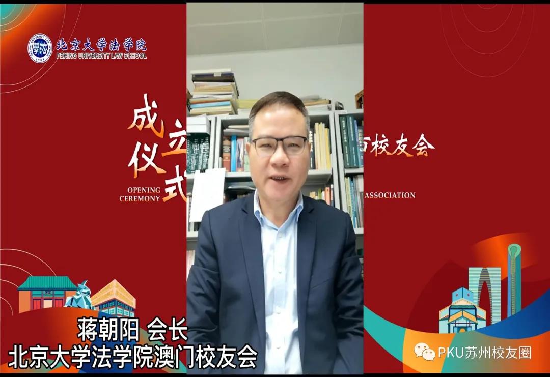 现场还播放了因工作原因不能来到现场的北大法学院院长潘剑锋教授的祝贺视频,同时其对在苏州生活和工作的法学院校友们给予美好的新年祝福。安徽、澳门、浙江、福建等各兄弟分会对于分会的成立也纷纷发来祝贺视频和贺信。