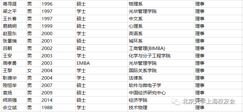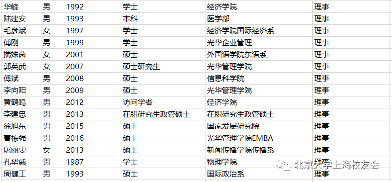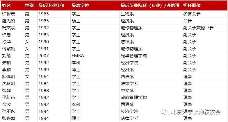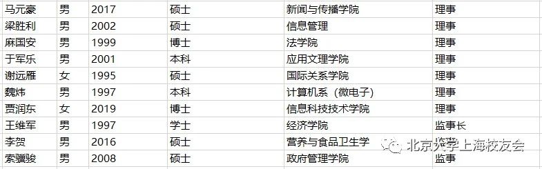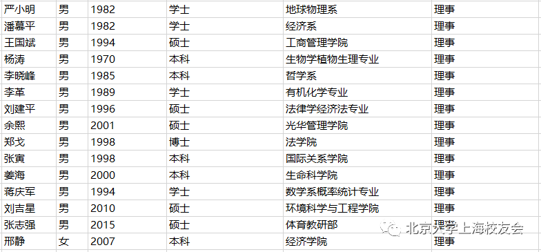 附:上海校友会第八届理事会及监事会名单