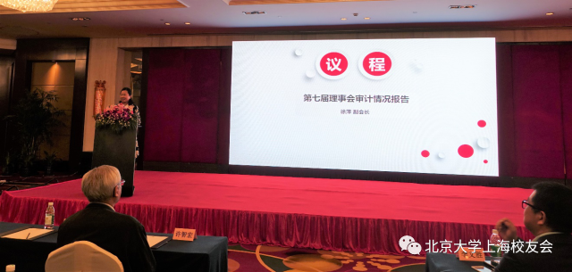 上海校友会副会长徐萍作第七届理事会审计情况报告,大会表决通过第七届理事会工作报告和审计情况报告。