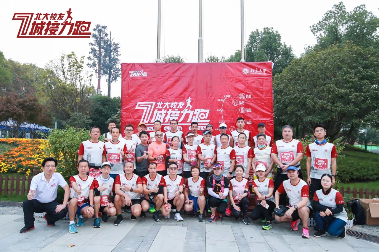 2020年10月28日,北京大学校友七城接力跑继续进行,30多位参加七城线下跑的各地北大校友转战武汉站,会合10余名线下跑的北大湖北校友,来到美丽的东湖,开启第四站征程。清晨,在美轮美奂的东湖绿道之首湖光序曲驿站,一股强劲的北大红奔流在东湖湖畔,成为疫后武汉的一道独特风景。