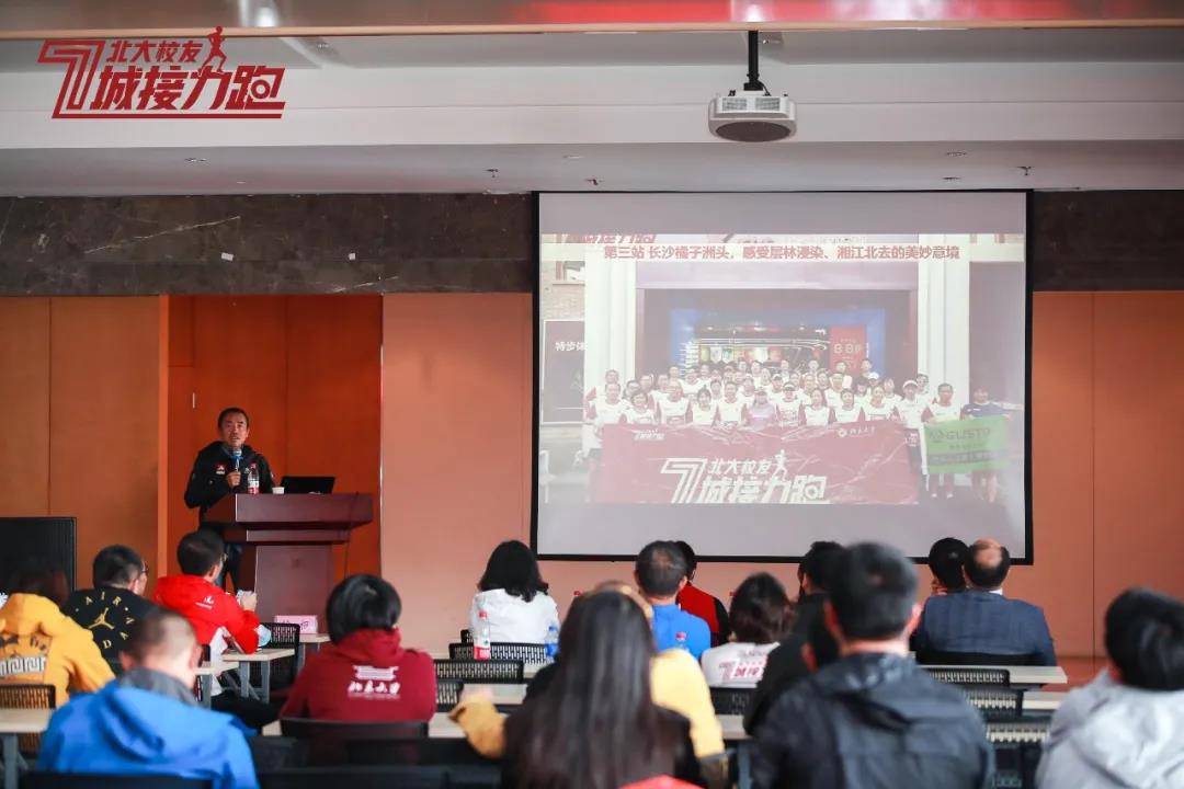 10月27日,结束广东两站接力跑的北大校友开启跨省之旅,来到第三站湖南长沙,在橘子洲酣畅开跑。北京大学湖南校友会会长邓映如,湖南校友会党支部书记、秘书长刘军,副秘书长匡利娥、袁涛参加校友论坛,对七城接力跑队员的到来表示热烈欢迎。