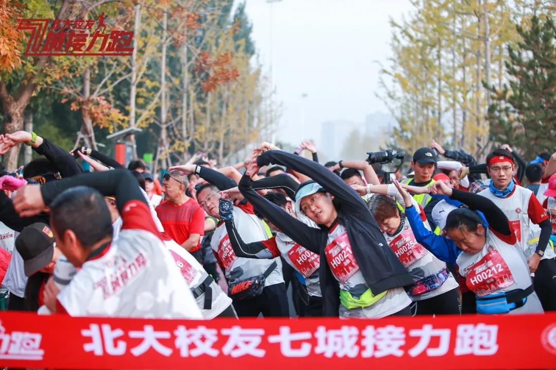 校友们整齐划一,集体热身,画面颇有马拉松赛前的韵味。在北京大学校友会蔺志坚等校友的发令声中,队员们争先恐后地出发,希望在这片自己曾经奋斗过的土地上再次实现突破。