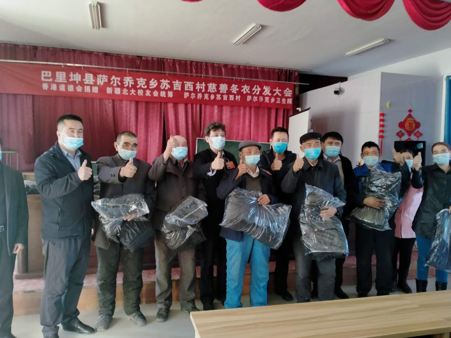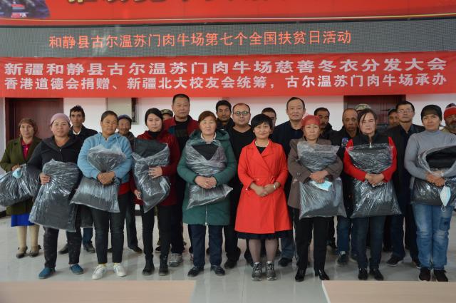 继2019年,新疆校友会分发香港道德会向新疆贫困乡村捐赠的14000件冬衣和助学金之后。2020年,新疆道德会又向新疆贫困乡村捐赠15000件冬衣、一辆救护车以及助学金、奖学金若干,累计捐赠额280万元。与此同时,2020年狮子会向贫困乡村学校捐赠桌椅、教学屏幕、300双棉鞋等物资,合计价值达8万余元。