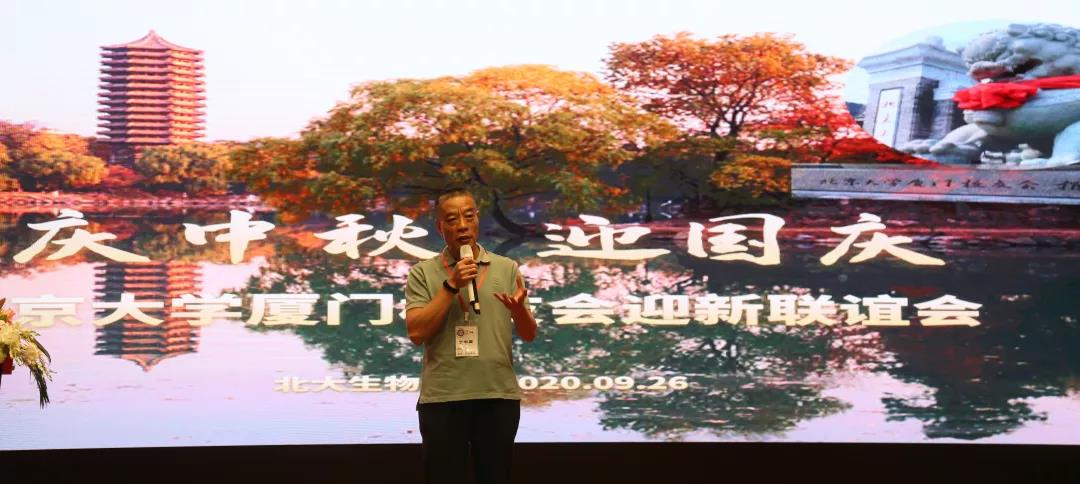 欢迎仪式后,北京大学厦门校友会会长丁学国作简短发言。他表示,2020年是特殊的一年,由于疫情影响,校友会许多活动都不能如期举行。此次联谊会大家热情高涨,报名人数众多。校友会成员充分考虑安全和疫情防控因素,制定出方案,才促成了此次迎新会的成功举办。丁学国提到,校友会每次举办活动都会得到许多热心校友的大力支持,例如今年在各位校友的帮助下,校友会向母校捐赠了一对石狮并立于东门,寓意着“狮来运转”,同时也表达了校友会对母校的美好祝愿与思念。此次恰逢双节,大家欢聚在这里,希望大家尽情尽兴、共叙校友情谊。