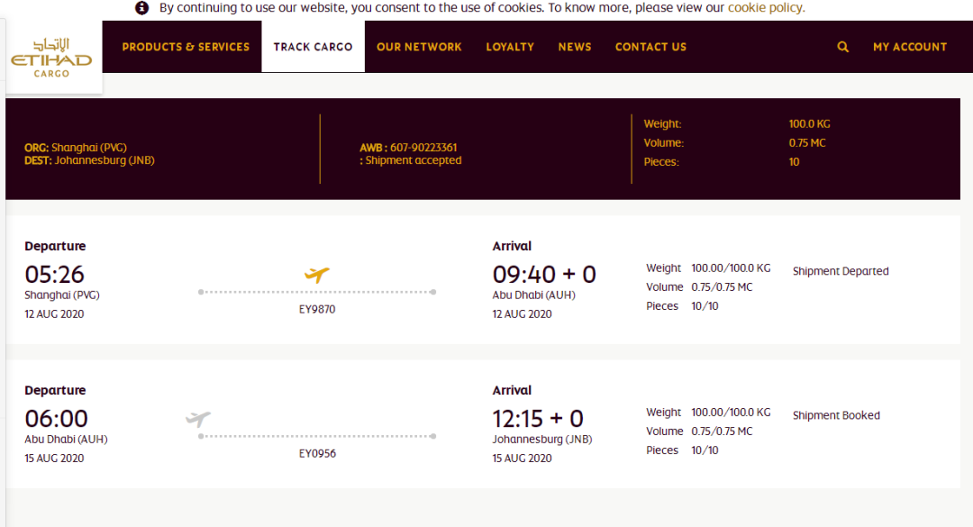 2020年8月12日,共计20000只医用口罩完成了国内清关,从上海经由阿布扎比运往约翰内斯堡,由全非洲中国和平统一促进会接收,发放给身处南非严重疫情中的华人华侨、当地弱势群体等需要口罩的人群和机构。