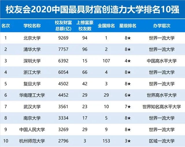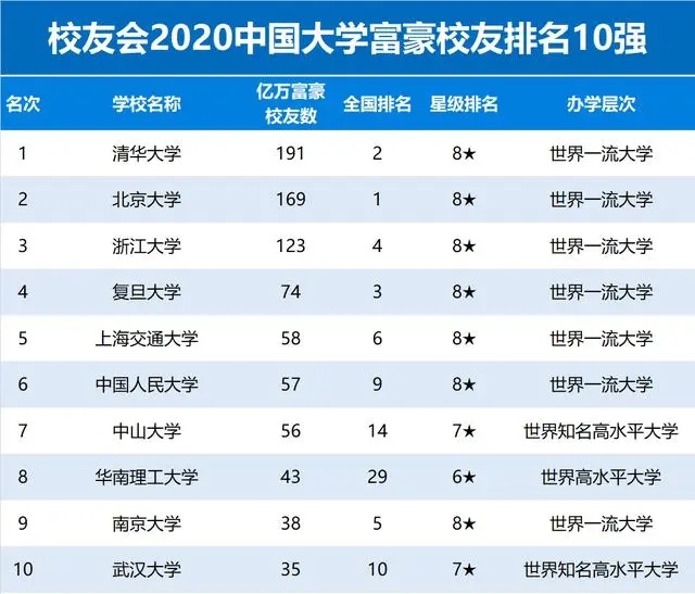 一所大学能否培养出世界、国家和社会公认的各领域杰出校友和优秀校友,不仅反映了中国大学办学水平、人才培养质量和毕业生质量,更体现出一所大学服务国家地方经济社会发展的杰出人才培养能力和贡献能力。能否培养出世界一流、中国顶尖的杰出校友已经成为国家“双一流”建设重要评估标准。毕业生校友中杰出科学家、政界英才和杰出富豪企业家校友人数多少是评价一所大学教育教学质量、毕业生质量和政商学界杰出人才培养能力的核心指标。