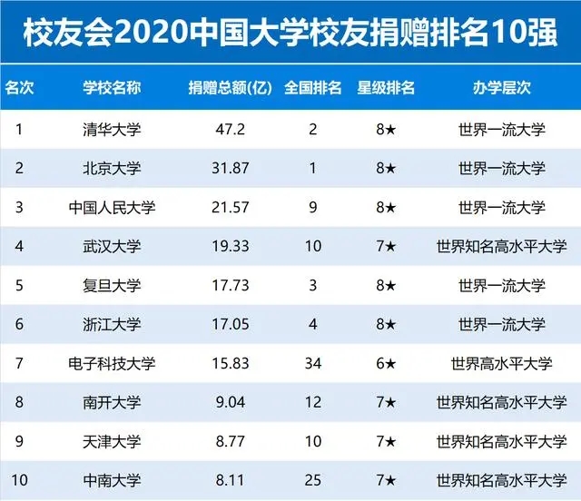 2020年7月23日,由全国第三方大学评价研究机构艾瑞深校友会网(Cuaa.Net)撰写完成、科学出版社公开出版发行的《2020中国大学评价研究报告—高考志愿填报指南》公布2020年校友会中国大学教学质量排名、2020年中国大学杰出校友排名和2020年中国大学校友捐赠排名等榜单。