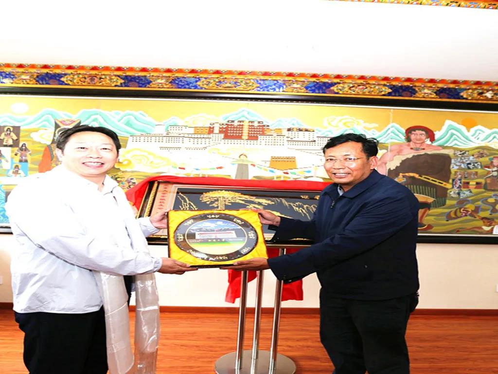 关长文执行会长和西藏大学宣传部长罗布互赠礼品