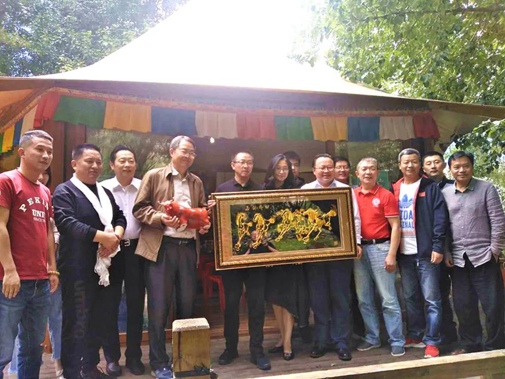 25日下午,北京大学西藏校友会专门为安徽校友会一行设达东林卡,大家欢聚一堂,林壑尤美、溪水流觞、其乐融融。西藏校友会欧阳旭理事长、方堃会长和安徽校友会赵国华会长、关长文执行会长互换礼品后,合影留念。