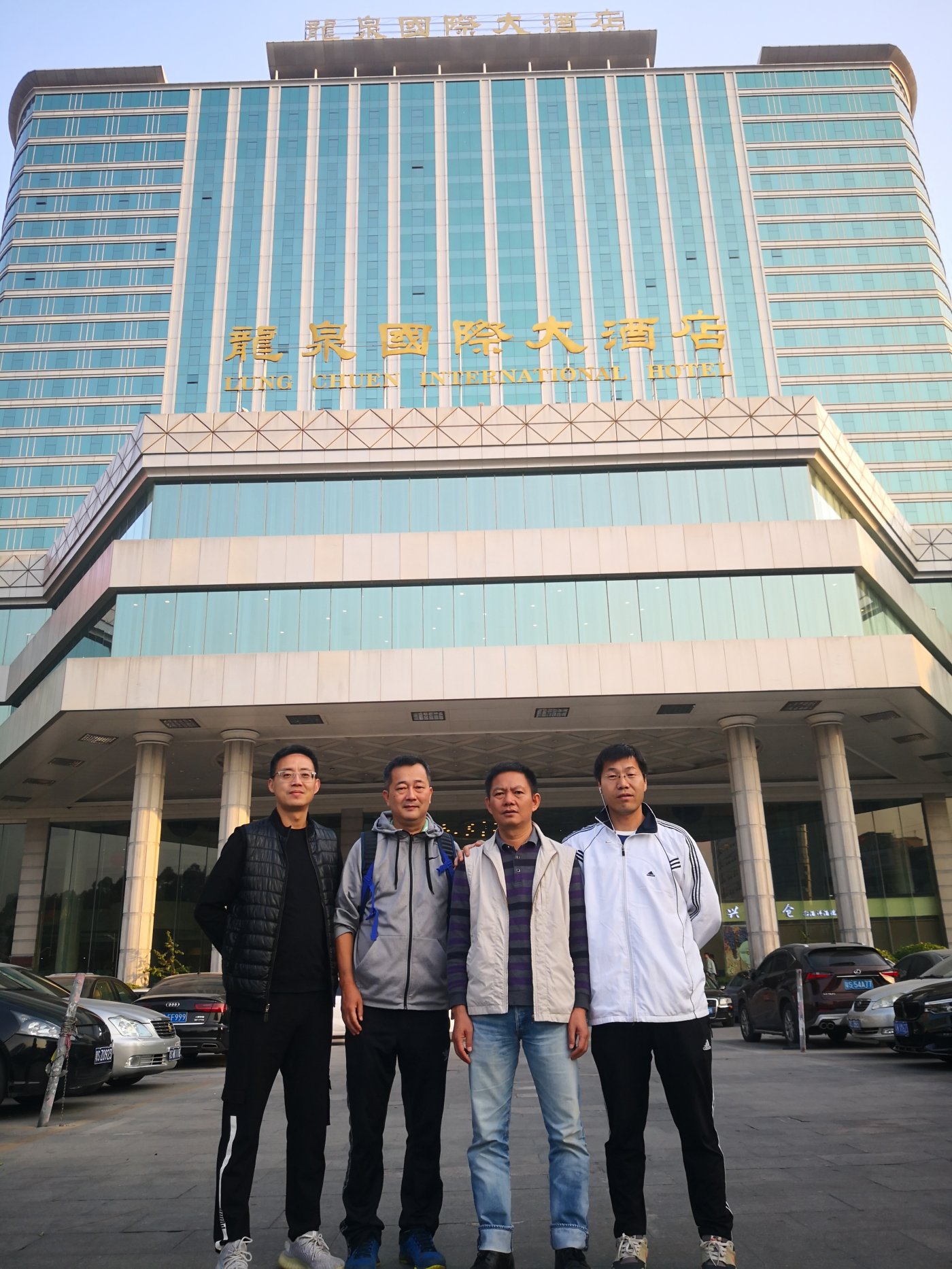 2020贺岁杯暨校友足联成立大会组织承办方-(左起)大湾区陈继伟(85经济)、苏建明(83英语)、黄辉(85哲学)、夏远舟(96金融)在莞实地考察、选择、确定足联大会的举办地点