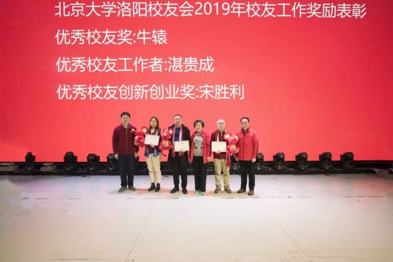 河洛北大人为洛阳的发展添薪加火,不断涌现优秀杰出校友。北大洛阳校友会四届理事会第三次会议特别为2019年度涌现的一批先进校友组织和校友作出了表彰决定。企业家分会被评为优秀校友组织,牛榬、湛贵成、宋胜利分别被评为优秀校友、优秀校友工作者、优秀校友创新创业奖,管家民、李连勇、李胜利等三位校友被评为校友工作贡献奖,陈江涛、杨讯波、薛梦馨、畅占亭分别被评为优秀校友企业家会员、优秀法律工作者、优秀健康工作者、优秀教育工作者。被表彰的校友在热烈的掌声与欢呼声中纷纷走上主席台与广大校友、嘉宾见面。