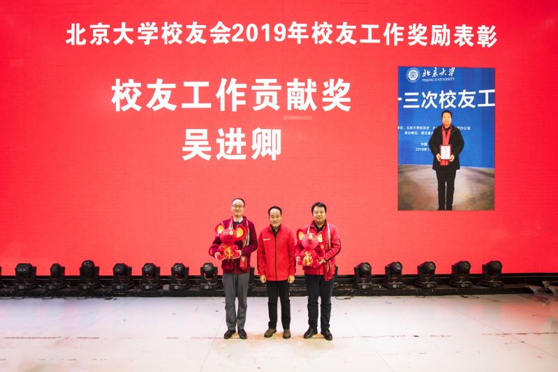 颁奖典礼环节令人瞩目。北京大学洛阳校友会会长郭引强首先对受到北京大学校友会表彰的三名洛阳校友任庆鹏、陈巍、吴进卿表示了衷心的祝贺。北京大学校友会 第九届理事会第三次会议上表彰任庆鹏为优秀校友,陈巍为优秀校友工作者、吴进卿为校友工作贡献奖。这是母校对我们洛阳校友会工作的认可,这个荣誉不仅仅属于三位校友,更属于全体河洛北大人。