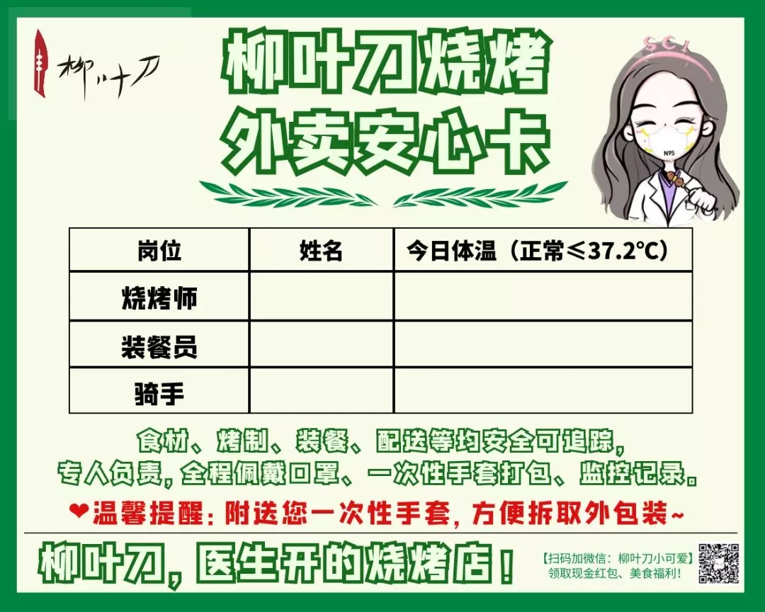 2月10日,柳叶刀烧烤提前开启交通大学店,堂食暂不对外营业,只为医务人员提供免费外卖晚餐。