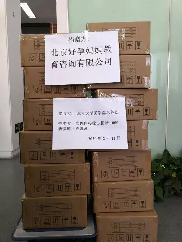 好孕妈妈为北京大学医学部捐赠1000瓶快速手消毒液。