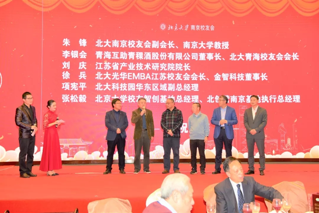 北京大学南京校友会副会长、南京大学教授朱锋、北京大学青海校友会会长、青海互助青稞酒股份有限公司董事长李银会、江苏省产业技术研究院院长刘庆、北大光华EMBA江苏校友会会长、金智科技董事长徐兵、北大科技园华东区域副总经理项宪平、北京大学校友智创基地总经理、北创营南京基地执行总经理张松毅致等六位校友致祝酒辞,共同举杯感谢南京校友的参与,庆祝新年即将到来,2020年会更好!