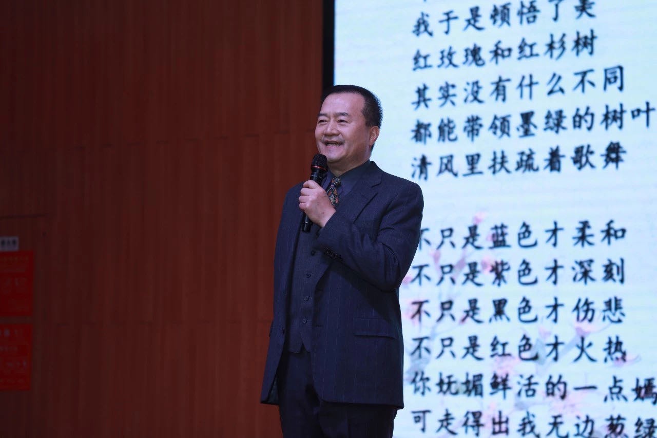 右: 北京大学中文系校友于慈江朗诵《遐想》和《再别康桥》,将观众带入大美的精神世界中。
