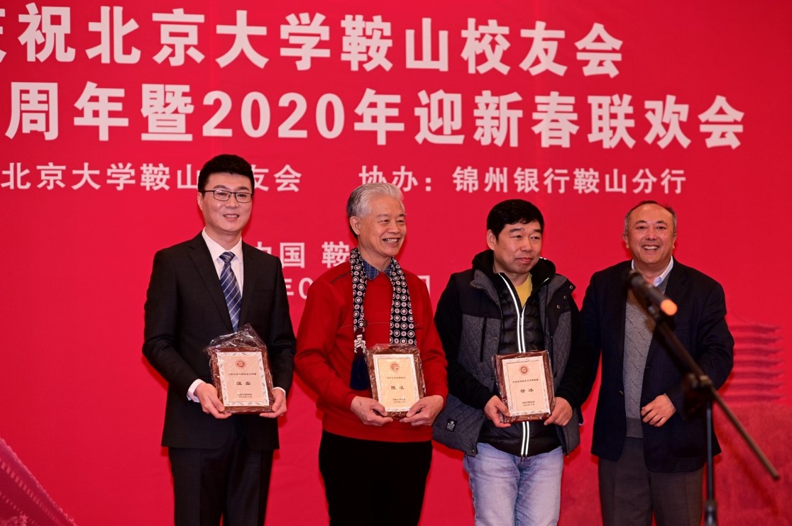 会议由副会长兼秘书长刘钢宣布了北京大学校友会2019年表彰鞍山校友会三名校友的决定。优秀校友陈斌、优秀工作者温淼、优秀贡献奖徐冰登台领奖。
