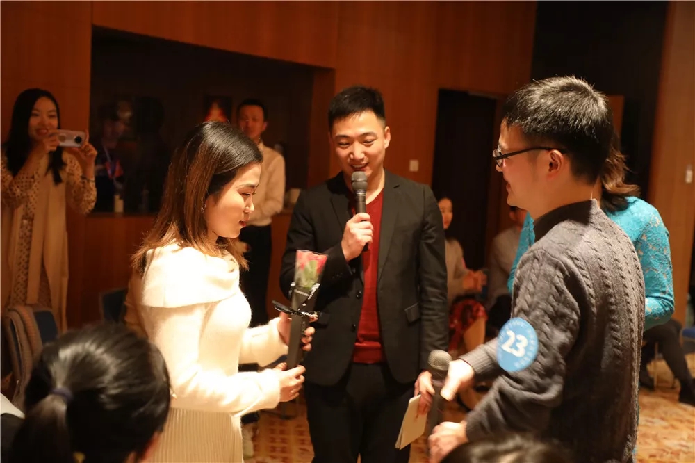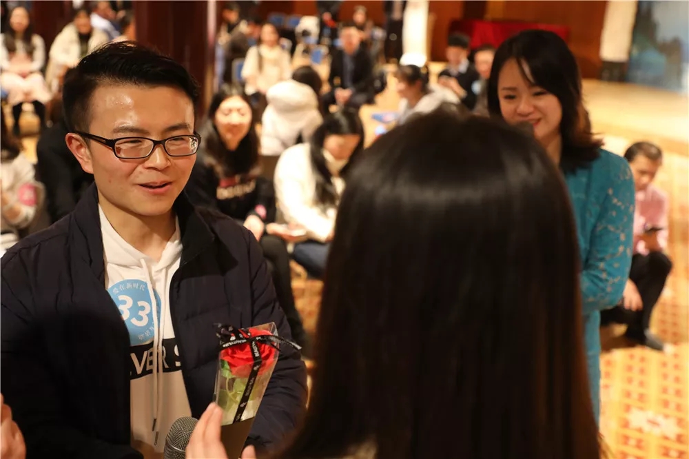 在“真情邀约”环节,十位男青年手持玫瑰花对心仪的女孩表达了自己的爱意。活动当晚,共有10对青年牵手成功。