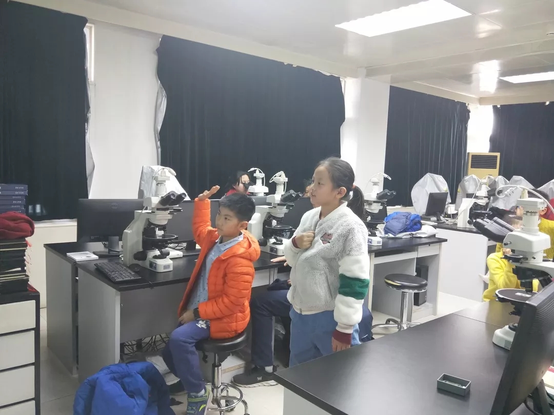 从地质博物馆出来,孩子们又进入到了显微镜下的微观世界,崔莹老师带领孩子们体验了显微镜的使用。