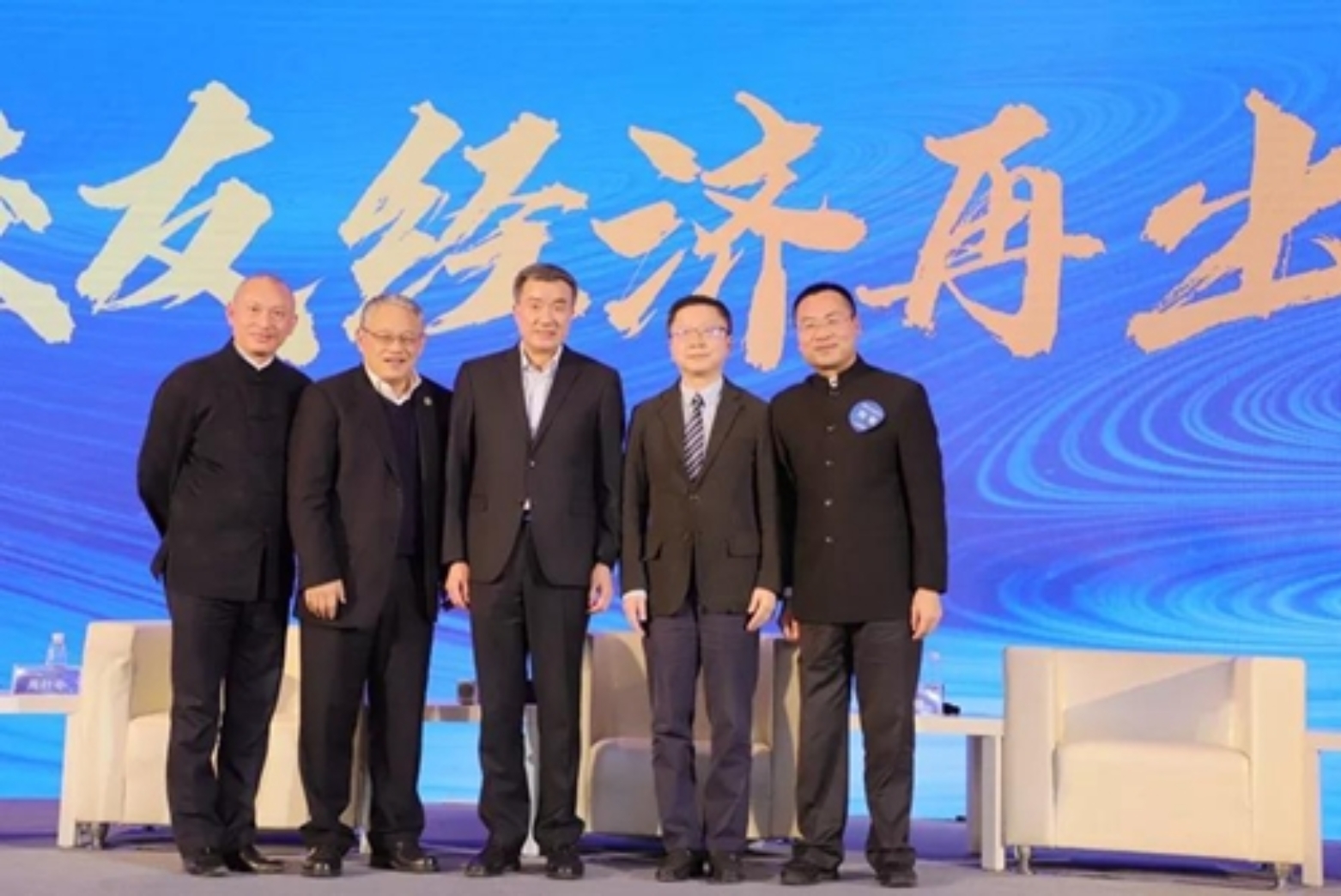 蹇宏(左一)、艾路明(左二)、周叶中(中)、马新强(右二)、刘萌(右二)