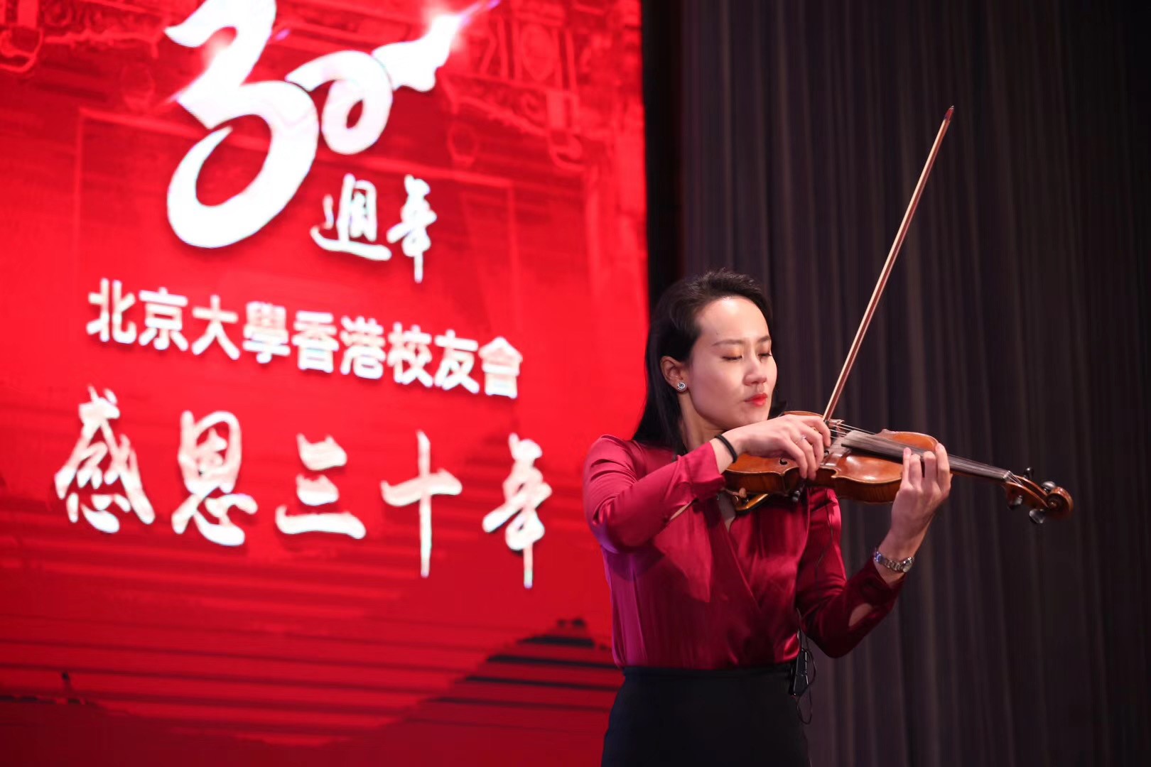 感恩三十年午宴文艺汇演将团聚大会推向高潮,七幅惟妙惟肖的沙画道尽三十年北大校友会的峥嵘历史。校友刘念鸿、刘芳兵和孙国睿也带来的精彩原创歌曲《老楼》,把观众瞬间带回了燕园的青葱岁月。校友代表发言环节,53届校友黎凤鸣分享了她亲身见证并参与了三校的香港校友会的成立和发展的感人经历。香港校友会理事合唱《燕园情》以及《东方之珠》表达对母校及香港的深情厚意。老中青三代校友宋诒瑞、陈熙扬、茅未言给在场观众带来了激情澎湃的乐器合奏《我和我的祖国》,共贺祖国七十周年华诞。演出最后,为野生动物发声的公益组织“明音”创建人刘萤萤为大家带来《音乐情感大自然》,用音乐和艺术的美感染启发听众关爱濒危野生动物,保护生物多样性,为后代打造可持续未来。