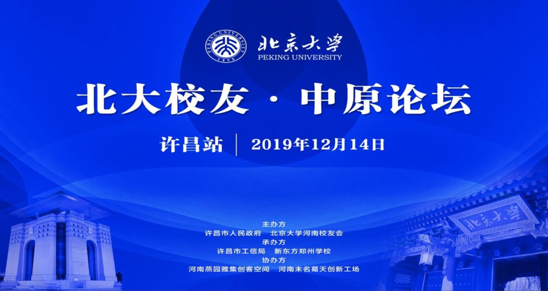 2019 年 12 月 14 日,“北大校友·中原论坛”在河南许昌成功举办。此次论坛由北京大学河南校友会、许昌市人民政府主办,许昌市工信局等单位承办。