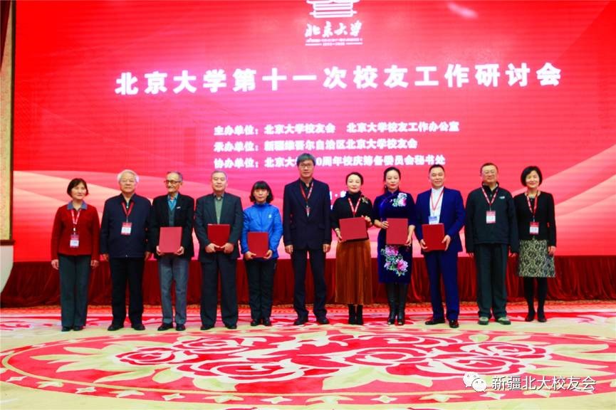 2018年5月,母校120周年华诞,新疆校友会20人组团专程庆贺,携精美新疆玉雕贺寿!5名校友争相出书献礼;8月起,在全疆10个重点中学设立“北大图书角”,赠书共达300多套;两年为5个重点中学安排了香港霍宗杰先生助学金100个名额,并为14名北大贫困新生争取香港助学金,全力配合母校在疆的招生工作。