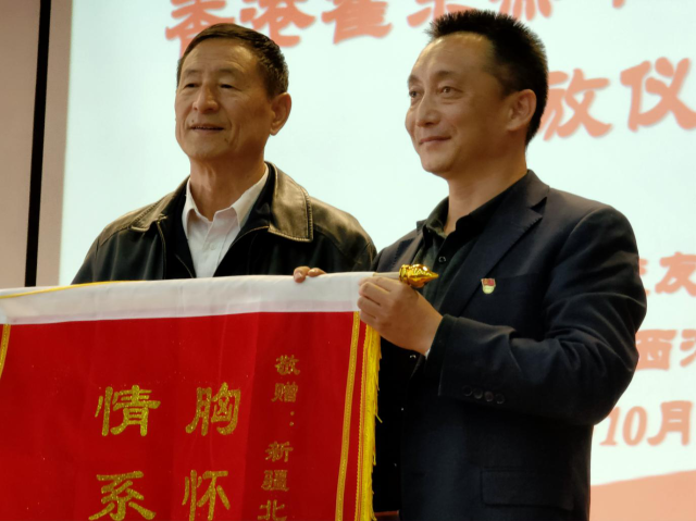 随后,向10名优秀学生发放了每人1500元的助学金。九年级2班加德拉同学代表受助学生致感谢词,她说:“感谢有你们,我们将不忘初心,继续奋发学习!”接着,水西沟中学为感谢北京大学新疆校友会及香港霍宗杰先生情系乡村教育,暖心助学的善举,特向北京大学新疆校友会赠送了“情系乡村教育 胸怀未名博雅”锦旗。