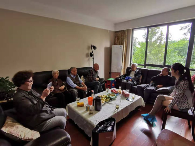 10月7日,刘京安副会长、徐晶晶秘书长一行来到方闻一校友的家,看望了在这里相聚的五位59级生物系校友。这五位老校友当年是同班同学,虽均不是四川人,但从毕业后分配到四川工作起,他们都已在川工作生活了50多年。老校友们和校友会一行聊起北大往事,还共同回味了国庆70周年阅兵中印象深刻的细节。其间,方闻一校友一直激动地用自己的手机记录着这美好的相聚时光。