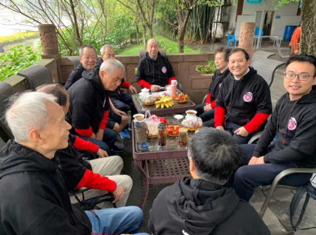 因负责联系的李庄校友事先并未将校友会将前来探望的消息告知老友们,所以,当刘磊监事长带着工作人员出现在他们面前时,各位老校友很是惊喜,穿上校友会为他们准备的新款会衫后,仿佛回到了湖光塔影之间,纷纷聊起了半个世纪前的校园趣事。