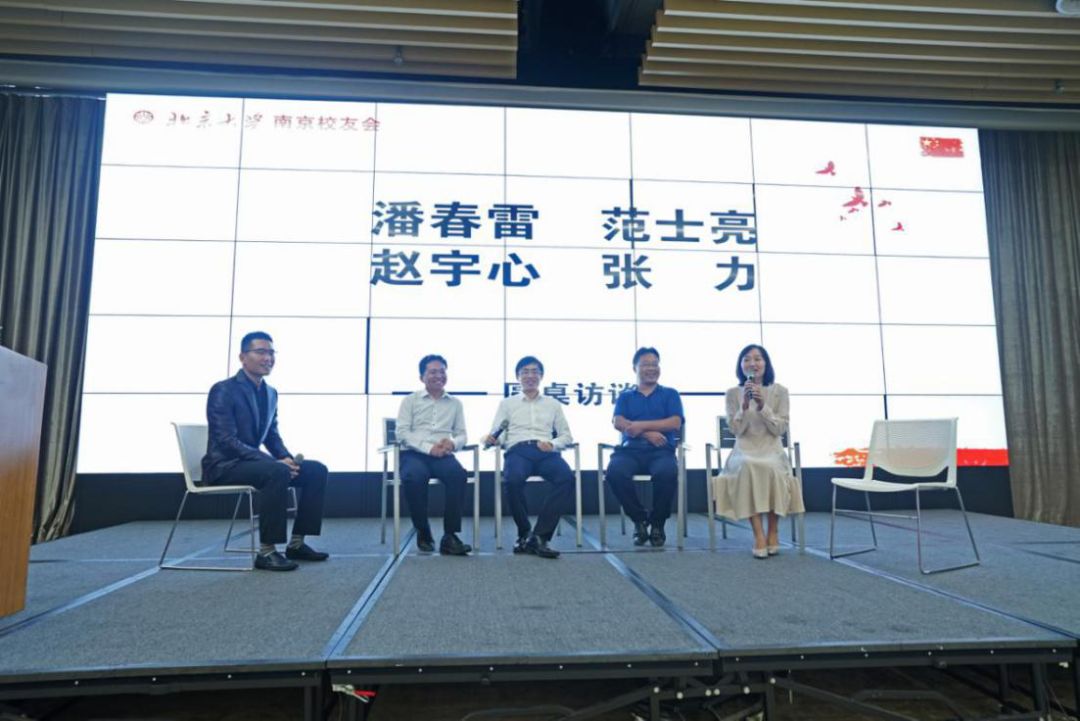 在圆桌访谈环节,潘春雷、范士亮、赵宇心、张力四位校友畅谈分享了自己在南京的工作、科研、生活等方面的经验并与台下的新校友们交流互动,现场气氛热烈。