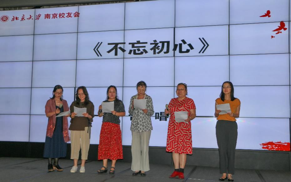 紧随座谈分享的是精彩的文艺演出,合唱《不忘初心》深情动人、诗歌朗诵《金陵城里的北大人》激情澎湃、北创营的节目《风吹麦浪》则给人以青春自然的气息。