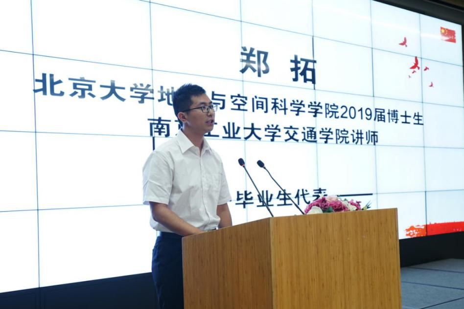 郑拓作为2019届新生代表发言,他表示会将北大“兼容并包、思想自由”的学术理念贯彻到自己的工作中,做“永远向上的青年”。