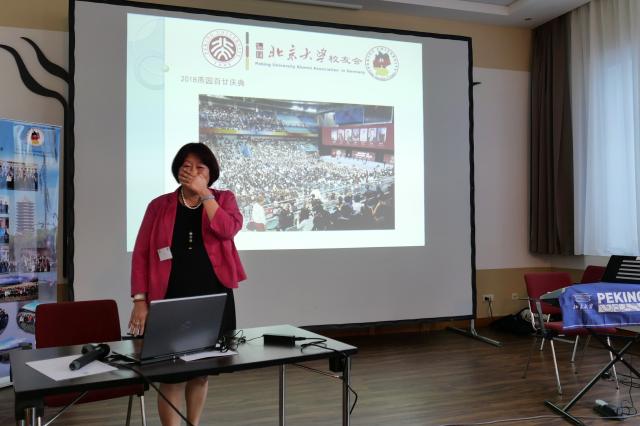 第二天的大会由理事会的秘书长温颖欧及理事徐文主持在钢琴伴奏 《燕园情》的歌声中开始。法兰克福总领馆的修春民先生发表了简短精彩的致辞,并预祝本届年会取得圆满成功。校友会会长于芳女士致辞,各位校友一一轮流介绍了自己,并开始了精彩的学术报告。
