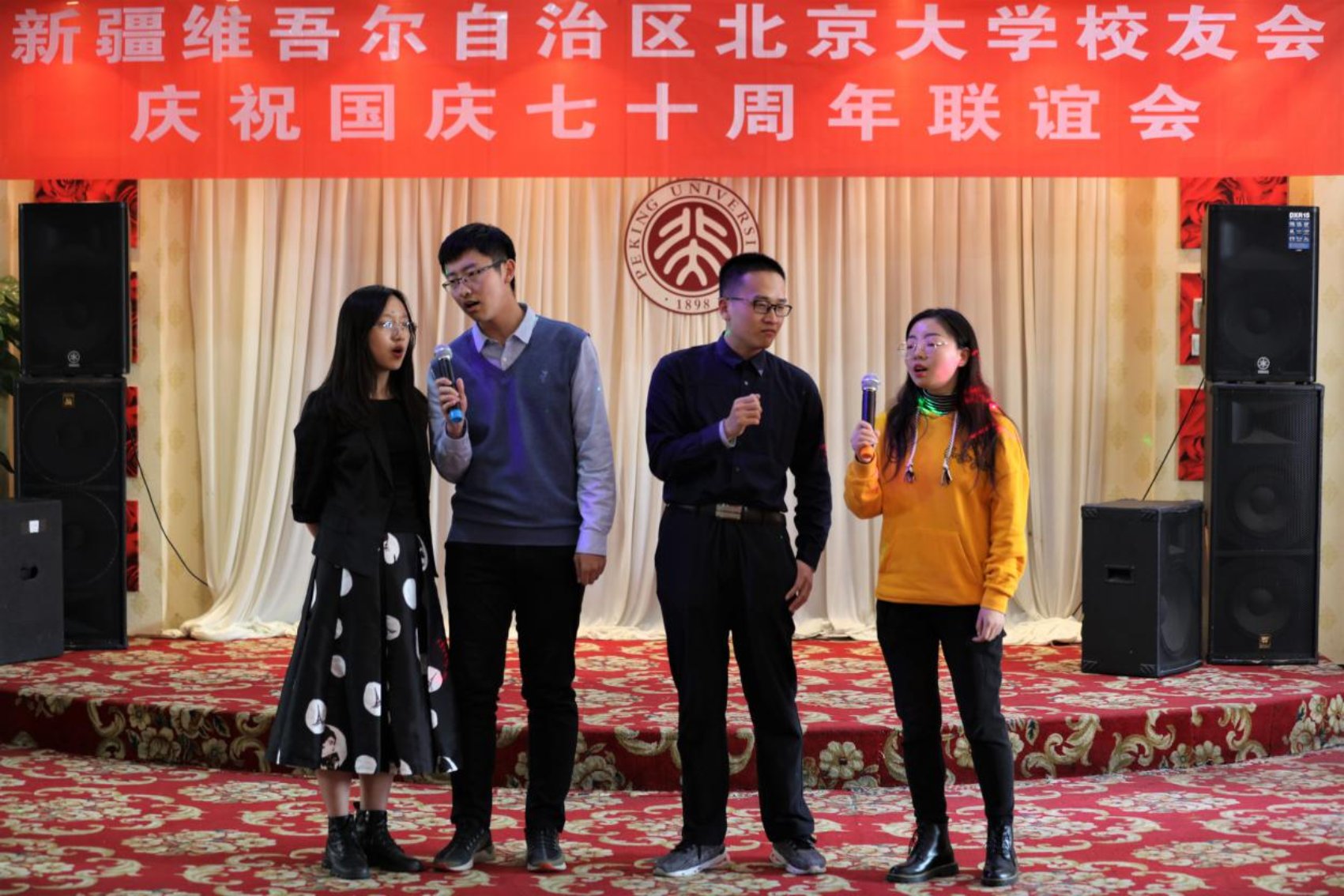 联谊会在庄严雄壮的国歌声中拉开了序幕,独唱、合唱、诗歌朗诵、手风琴独奏等,校友们各展所长,奉上一个又一个精彩纷呈的表演,向党致敬,为国献礼,赢得了在场观众的阵阵掌声和喝彩。专门从乌鲁木齐县水西沟中学赶来的北京大学研究生支教团张栋杰等人,以一首精彩的小合唱为联谊会增添了一抹青春的亮色。