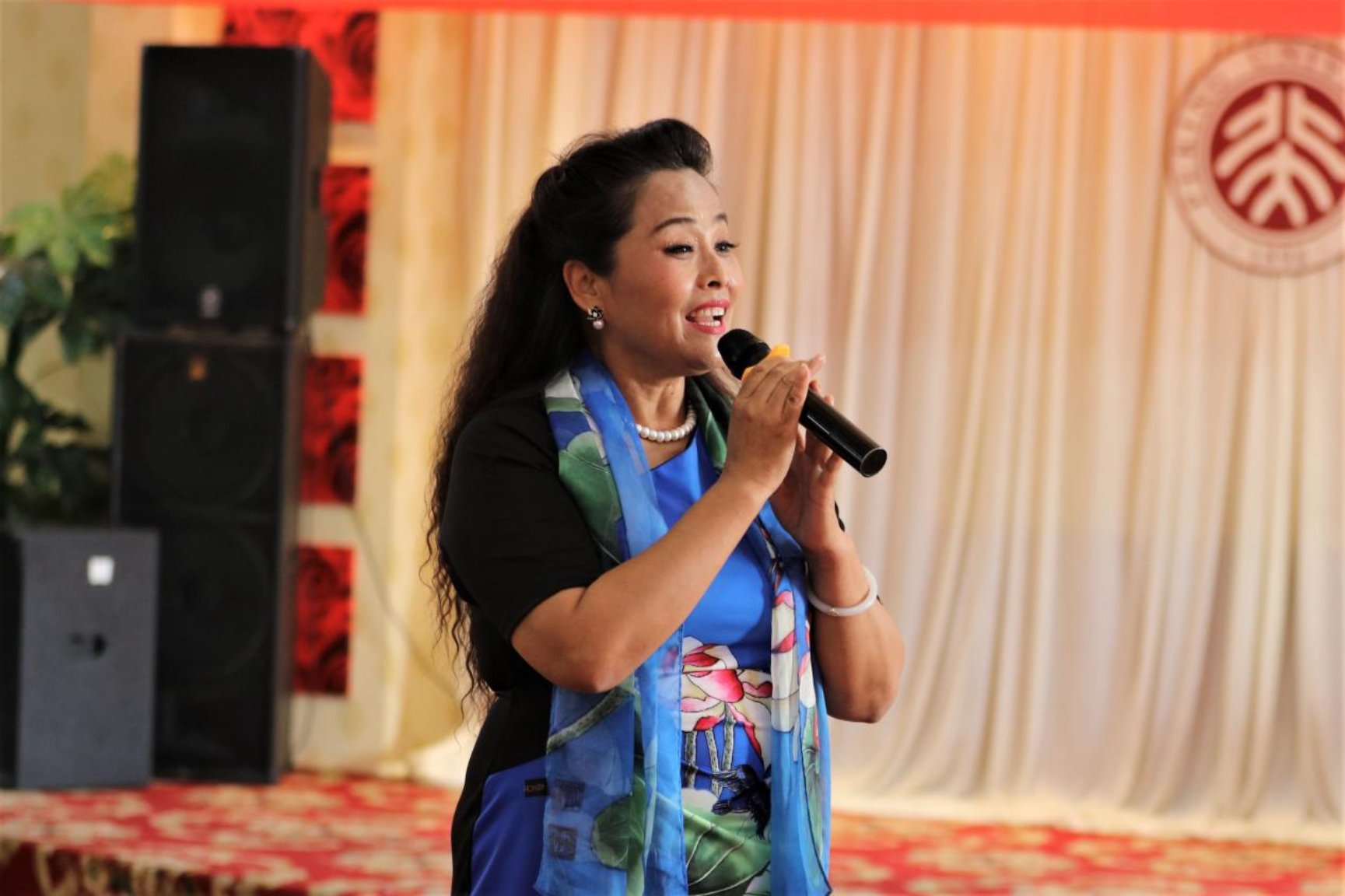 一位接受新疆北大校友会资助的少数民族小姑娘也来到了联谊会现场,同大家一起跳起了欢乐的麦西来甫。新疆北大校友会始终响应党中央号召,近年来一直致力于扶贫、帮困、助学等公益活动。为庆祝建国70周年,新疆北大校友会2019年已开展医学部的义诊、摄影家协会的助学、瞻仰烈士陵园和此次的联谊会活动,9月28日还将举办庆祝中华人民共和国70周年华诞摄影书法展,迎接伟大祖国的生日。
