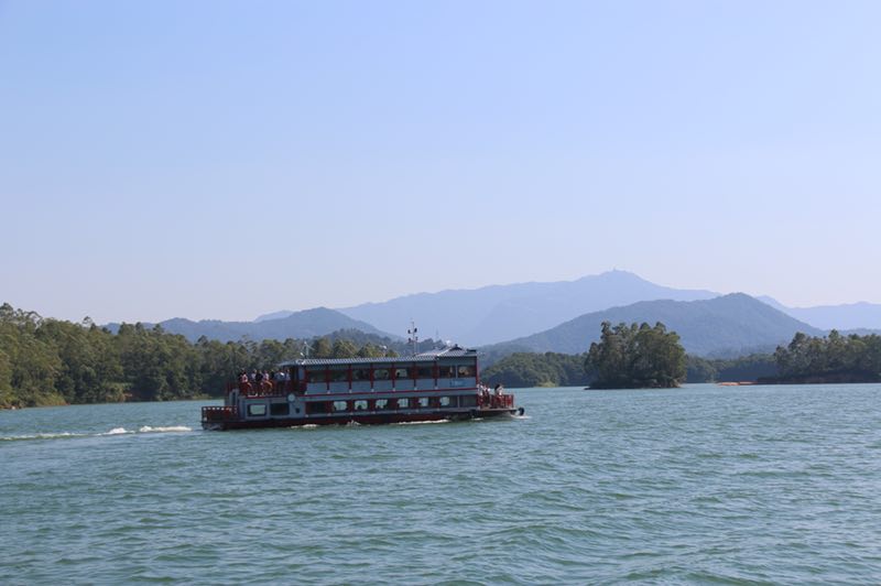 午后行船于万绿湖之上。万绿湖,又名新丰江水库,乃华南第一大湖,缀以三百余座岛,因“万年常绿、万年皆绿”而得名,即导游所道“优雅婉约、荡气回肠”之名也。游船稳行,拨开湖水,犹如白鱼翻碧浪,一路追船尾。满目的水是绿的,近处的岛是绿的,远处的山是绿的,连蔚蓝的天空也似乎被染成了绿色。绿如碧玉,绿如墨,绿如烟、如雾、如纱,勾人心弦,动人心魄,绿得让人想要拿它和朱自清先生眼中梅雨潭的绿一较高下。烈日西倾,洒芒于湖上,浮光跃金,绿意绵延,临风畅谈,饮一口源自万绿湖的“正能量”牌矿泉水,其喜洋洋者矣!择龙凤岛而登之,林中信步,观鱼,喂鱼,看杂技,其乐融融者也。