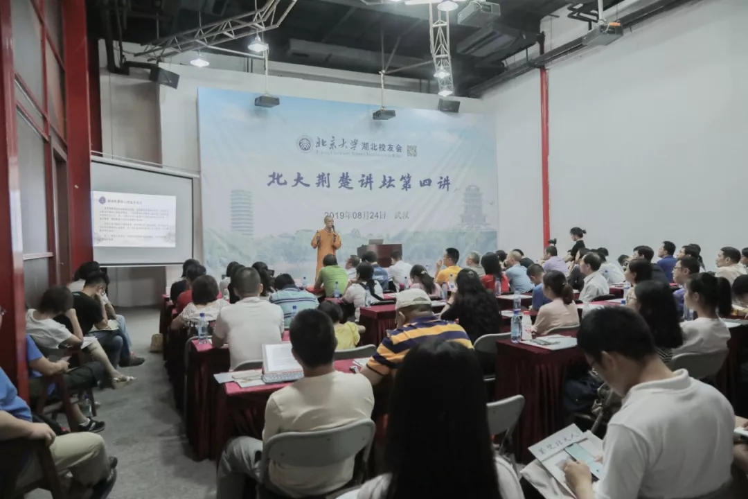 2019年8月24日,北大湖北校友会发起的北大荆楚讲坛在武汉燕园北大校友之家隆重举行第四讲活动,曾以满分获国际奥数金牌的北大校友、在北京龙泉寺出家的贤宇法师,和北大书画协会副秘书长许森林,进行了专题主旨演讲,近百位北大校友和嘉宾聆听了讲座,交流启悟,收获思想。据悉,这是贤宇法师首次在其出生地武汉开讲其佛系人生,引来各方关注和欢迎。