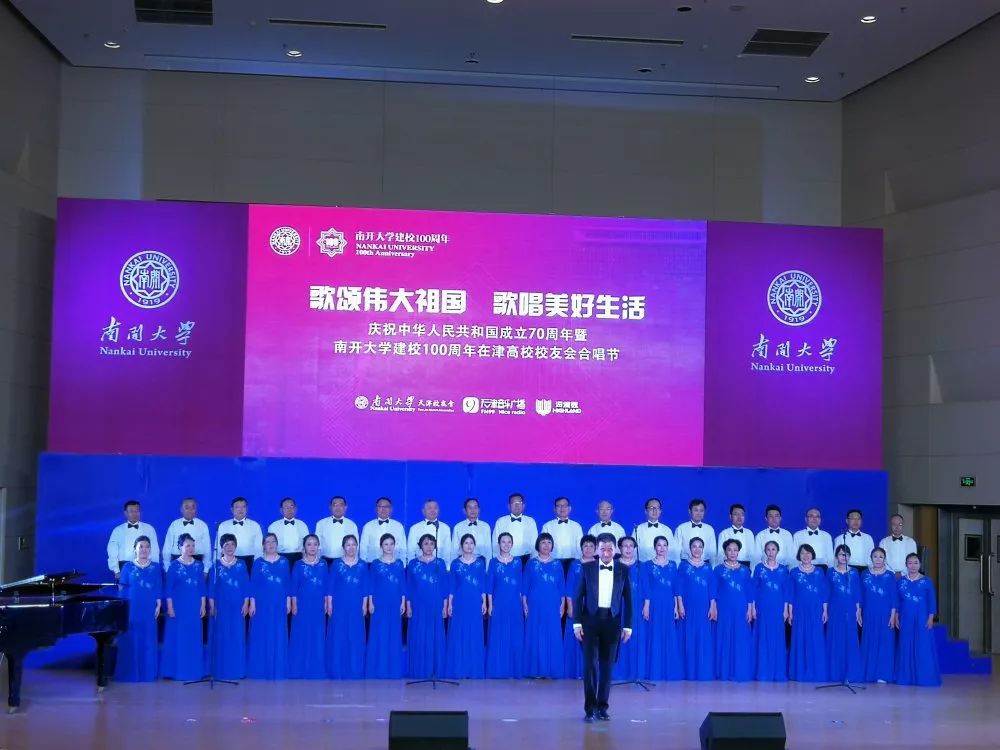 歌颂伟大祖国,歌唱美好生活—庆祝中华人民共和国成立70周年暨南开大学建校100周年在津高校校友会合唱节,于8月10日在南开大学田家炳音乐厅隆重举行。合唱节是南开大学百年校庆诸多活动内容的一部分。在天津的高校校友会参加了此次庆祝活动,北京大学、南开大学、浙江大学、天津大学等在天津各大学校友会十三支合唱团参加了演出活动。