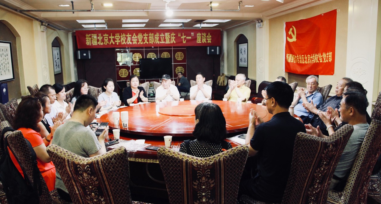 2019年6月27日上午,新疆北大校友会党支部成立大会暨庆“七一”座谈会在新疆教育学院会议室举行。新疆北大校友会会长张野主持党支部成立大会和座谈会,乌鲁木齐市扬子江路片区党工委副书记、扬子江路片区管委会主任杨文红,自治区民政厅社会组织管理局干部范舒慧等应邀参加座谈会。