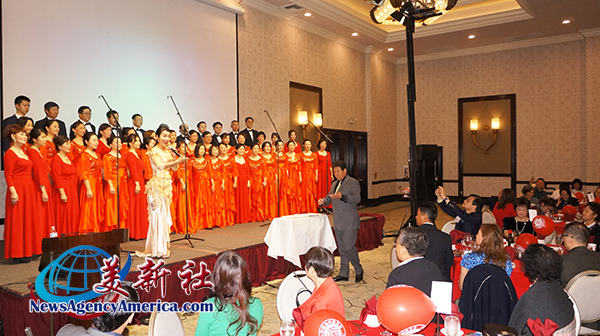 北大南加州校友合唱团、美国雅歌合唱团、麦穗音乐工作室等合作演唱《大地飞歌》、《传奇》,为晚宴拉开帷幕。