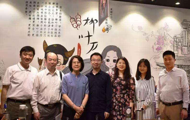5月10日晚,北京大学原常务副校长、北京大学医学部原常务副主任、北医校友会会长柯杨,北京大学医学部原副主任、北医校友会常务副会长、北京大学临床研究所所长方伟岗,北京大学医学部副主任、北医校友会副会长肖渊,北京大学医学部校友工作办公室副主任冯江星在王建等校友陪同下参观了校友创业的网红餐饮店“柳叶刀烧烤-北大清华店”,并举行了小型茶话会。