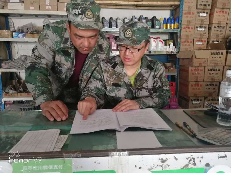 王崇月(右一)在南疆基层连队工作照。