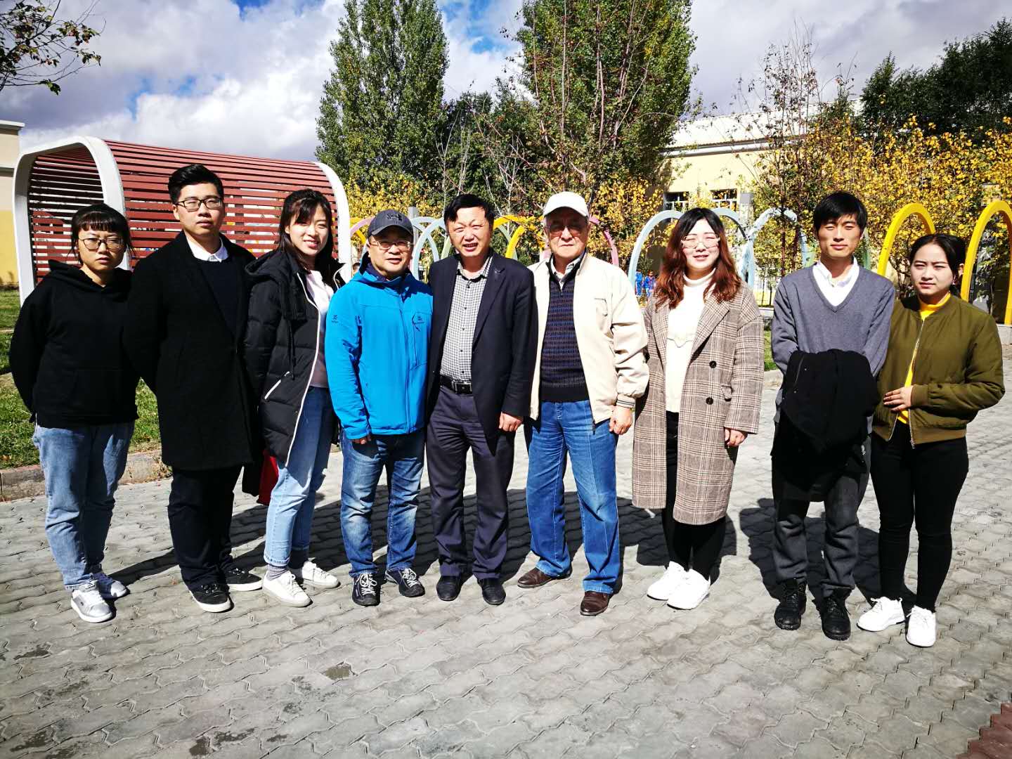 北京大学马克思主义学院王强书记(右一)在新疆看望王崇月