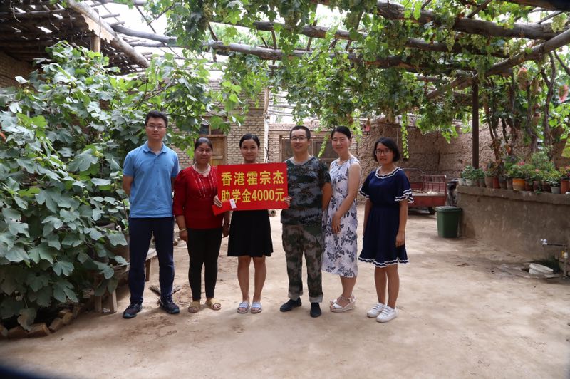 郑明凤(左一)发放助学金