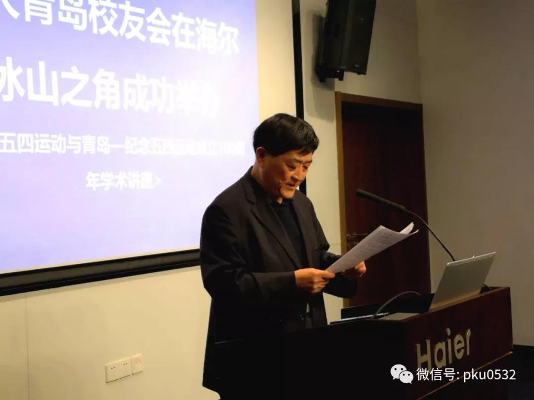 为了纪念伟大的五四爱国运动一百周年,北大青岛校友会于2019年5月11日上午10:00-11:30,在海尔冰山之角二楼“商学院2”会议室成功举办了“百年五四与青岛”的学术讲座。本次讲座特邀北大历史系76届毕业生、青岛市社科院研究员、北大青岛校友会常务理事张树枫作主题演讲,有来自各单位的北大校友和北大之友共30余人参加了会议。本次活动由北大青岛校友会执行会长余勇主持。