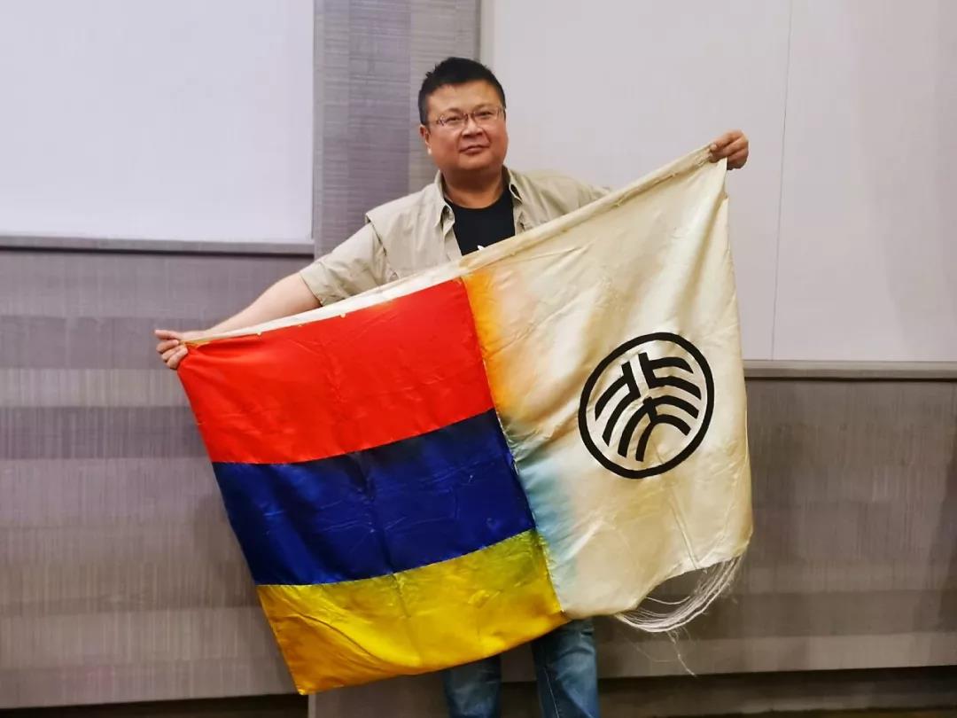 北京大学台湾校友总会将一面蔡元培先生设计的老北京大学校旗复制品赠送给苏州校友会。