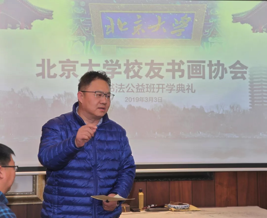 郭俊杰执行会长介绍,北京大学书画校友协会自2016年成立以来,已经有八百多名北大师生及海内外校友参加书法公益班学习。