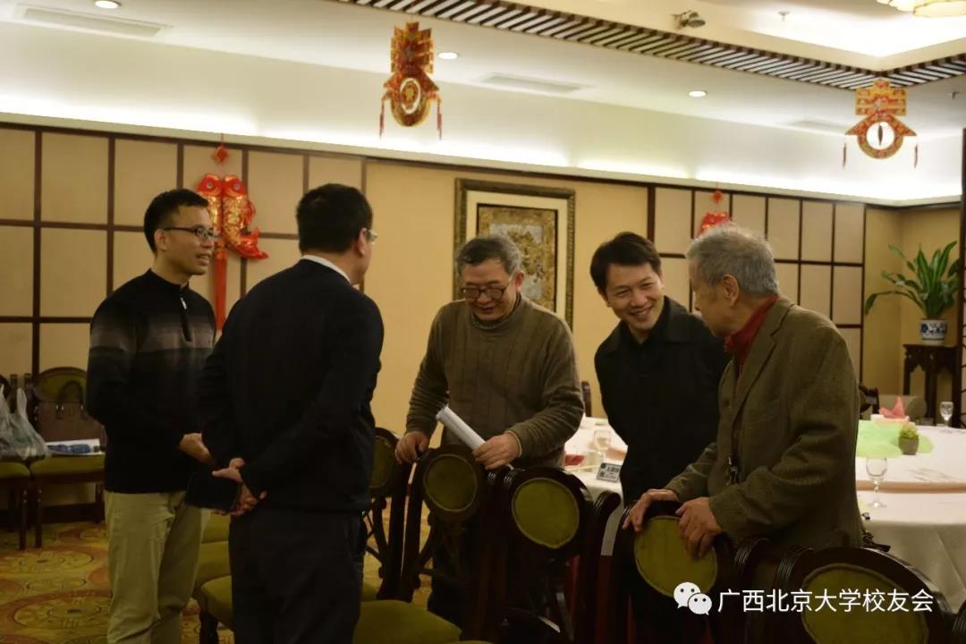 老校友们齐聚一堂,回忆畅谈求学经历和工作经历。虽然都已是70岁以上白发苍苍的老人,但老校友们精神矍铄、神采奕然,谈笑风生间风采依旧。这些老校友曾经都是各自工作岗位上的佼佼者,并对校友会建设和发展都做出过卓越贡献。即使在颐养天年之时,他们仍对校友会工作和发展倾注热情和期盼,为校友会的发展积极出谋献策。在此,广西北京大学校友会衷心祝愿各位老校友身体健康,新春快乐,万事如意,阖家幸福!