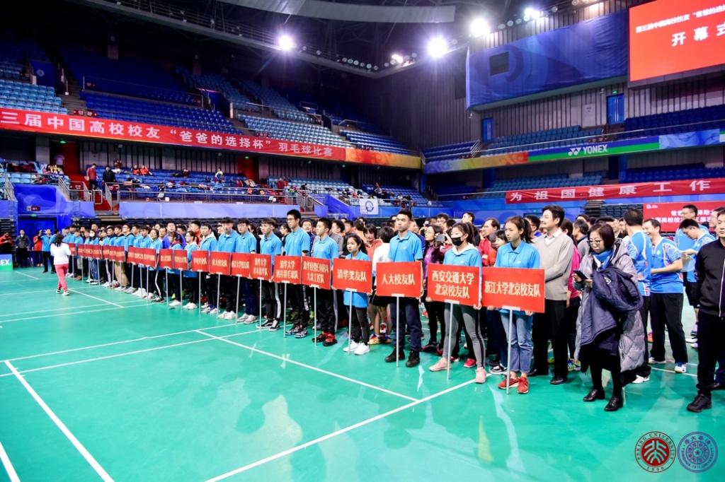 12月22日,第三届中国高校校友“爸爸的选择杯”羽毛球比赛在北京大学邱德拔体育馆拉开序幕,来自北大、清华、浙大等28支高校队伍参与角逐。